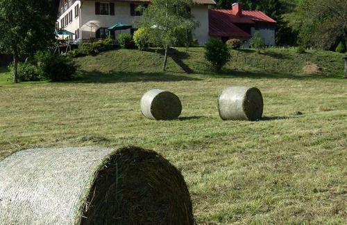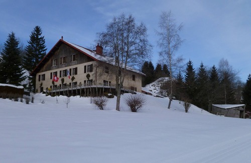 The Mont Sala apartment is located on the 1st floor, facing south to north, with an area of 66 m2, 5 windows that overlook the countryside, has 2 double bedrooms, 140 cm beds. , each with their own shower room and toilet, or 2 in total; a living room and its 90 cm sofa for the 5th person possible, Living area with equipped kitchen, dining table, dresser containing all the basic equipment to prepare your meals (possibility of breakdown service in grocery store on site, including baked pastries here). Linens, cleaning products are provided at no extra charge. Enjoy the ground floor. our relaxation area: living room and its open fireplace, weight room, sauna, dryer, ski-room-workshop (possibility to rent Nordic ski equipment, snowshoes, sleds, to take hiking lessons). In summer: large terrace, barbecue, children's playground, table tennis, volleyball, pétanque, loan of orientation maps for your marked hikes directly from our guest house. Finally, you will find our coffee room, as well as the mountain restaurant where we serve Comtoise specialties.