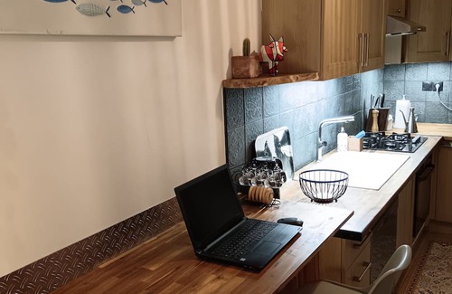 The kitchen is equipped with an oven, a stovetop, and a refrigerator, as well as a coffee maker, an electric kettle, and a microwave. In addition, there's a jetted tub, along with towels, soap, and toilet paper. And you can even travel light because you'll have access to laundry facilities. Other amenities include bed sheets, an ironing board, air conditioning, and heating.