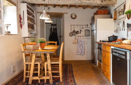 Above the tiny hamlet of San Giovanni del Pantano lies Gudiolo di Sopra. Set amongst olive trees and lavenders the carefully restored XV century tower and house, with a saltwater swimming pool, enjoys stunning views of distant fields and valleys.