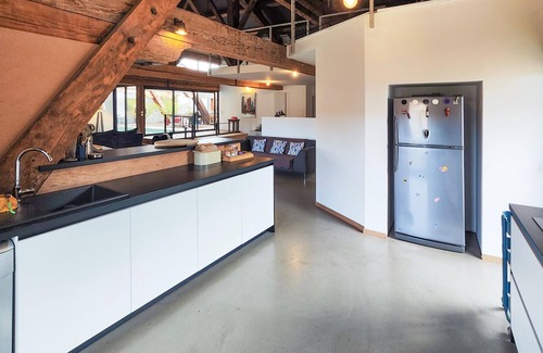 Welcome to this special accommodation that will delight you. Here you will find enough space for your extended family or friends to spend a great time together. Enjoy the open and bright loft apartment, as there is something here for all ages. Stay in the large living room, play table soccer, cook together or make yourself comfortable on the sofas. From here you have a view of the semi-covered roof terrace with swimming pool. Spend many fun hours here or throughout the apartment, where there are plenty of toys for your children.