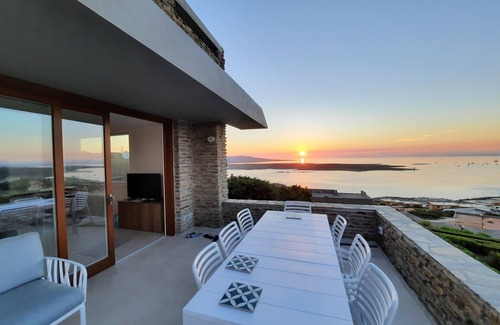 The crystal clear sea of Sardinia, an exclusive and breathtaking view of the Pelosa and the surrounding hills, large windows that allow the gaze to wander into the green and blue. All the comforts and amenities necessary for an unforgettable holiday. Breakfasts, lunches, aperitifs and dinners on the large terrace overlooking the sea, fully equipped kitchen with oven, dishwasher, microwave and coffee machine, comfortable beds, study room and air conditioning throughout the house. Mediterranean garden and outdoor shower. Outdoor laundry area and communal pool, and outdoor shower with hot water. Wi-fi throughout the house, flat screen TV with Netflix, Prime, etc and satellite TV satellite platform.