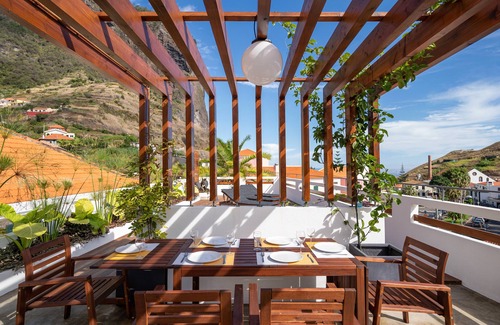 The rehabilitation of the terrace has made this space the ex-libris of the property. With a sunbathing solarium, a shower to refresh yourself, and a barbecue for outdoor meals. This in an exotic setting in the northeast of Madeira Island, with 360º views over the sea and mountains surrounding the village.