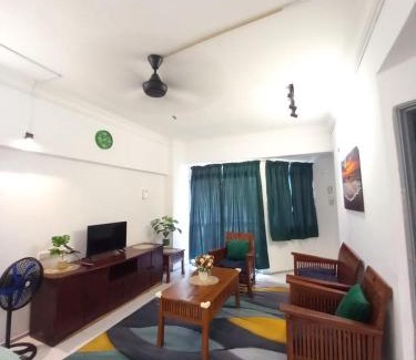 Inap Desa Chempaka, Golden Straits Villa offers a public bath and an open-air bath, as well as air-conditioned accommodations in Port Dickson, a 17-minute walk from Saujana Beach. The property is around 1.2 miles from Batu 1 Beach, 21 miles from Palm Mall Seremban, and 25 miles from Sepang International Circuit. The outdoor swimming pool features a pool bar and water slide. Each unit features a balcony, a fully equipped kitchen with a fridge, a dining area, and a flat-screen TV, while the private bathroom includes a bidet and free toiletries. The apartment complex features some units with sea views, and units include a kettle. For guests with children, the apartment provides kids pool. Fishing can be enjoyed nearby. Kuala Lumpur International Airport is 29 miles from the property.