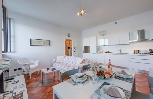 Enjoy the enchanting Lake Maggiore with this modern duplex apartment, on the second floor of a historic building. The residence is known as Dimora dell\'Antico Porto and is right by Lake Maggiore in the Piazza del Popolo, the oldest square in Arona. The location could not be prettier, it is next to the 14th century harbour and opposite a charming church which dates from 1592. The building\'s 16th century arches and wrought iron balconies bear the arms of the Borromeo family, which adds to one\'s sense of history.