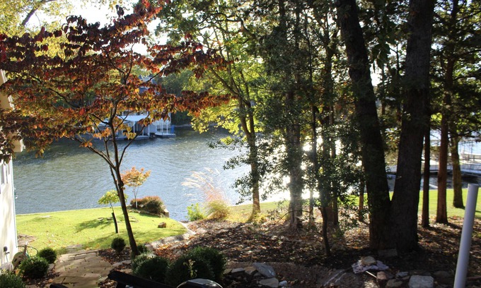 The private dock is located in a protected, no wake cove, has a platform perfect for swimming, lounging and fishing, slip is available upon request at time of booking. It is protected from the rough water of the main channel making it safe for swimming. Kayaks are also included. The jet ski ports are not available.