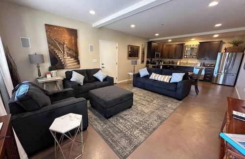 There are two queen beds in the bedroom and a queen pull-out sofa bed in the living room. There is plenty of space to hang out inside and out. A large, open living space will meet all your needs, with a full kitchen, and a table that seats six. The bathroom is spacious, modern, and spotless. The best part is the large patio overlooking the Pacific Ocean - a great place to end the day while enjoying the sunset.