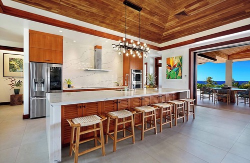 Magnificent, spectacular, and amazing are some of the adjectives that come to mind as you enter through the front door of this sprawling new Kukui’ula Villa.