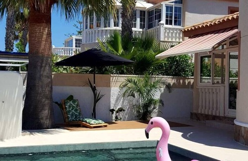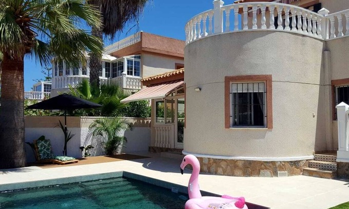 Beautiful detached villa in the Tower (Pilar de la Horadada). Upstairs with large terrace, suite with own bathroom and separate entrance. Ground floor two bedrooms, dining room, kitchen and bathroom, a / c, ceiling fans and satellite TV, all very spacious and bright, large porch closed and plenty of space outside. capacity for 8 people, has 1 double bed, 4 single beds, 2 sofa beds (for 2 people) +1 single bed). Parking within the property, 2 bicycles. I rent in summer for weeks.