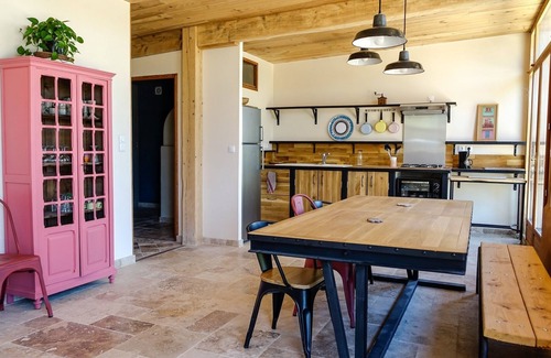 The Atelier, former cement tile factory, is an ecological cottage of 80m2 nestled in a small valley of the great site classified Moureze / Salagou, five minutes from all amenities.