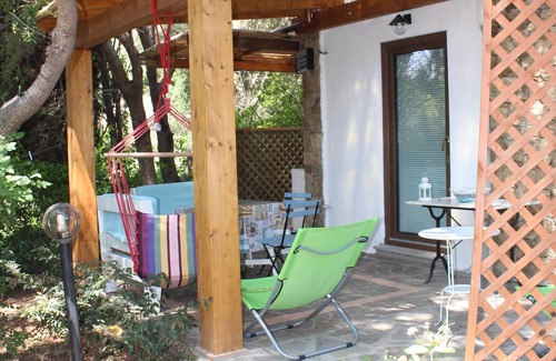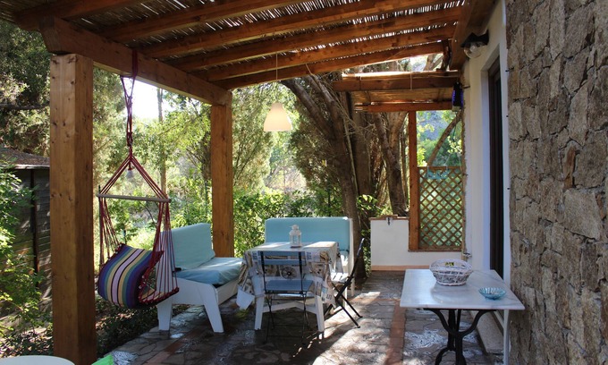 Three hundred meters from the beach in quiet and peaceful environment, in a detached cottage in a corner of the garden room for two people with bathroom and kitchenette placed in a private and covered the veranda. The room can also accommodate a cot. Possibility of a second bedroom with separate bathroom and a few meters away. Guests have a barbecue area, outdoor shower and washing machine.