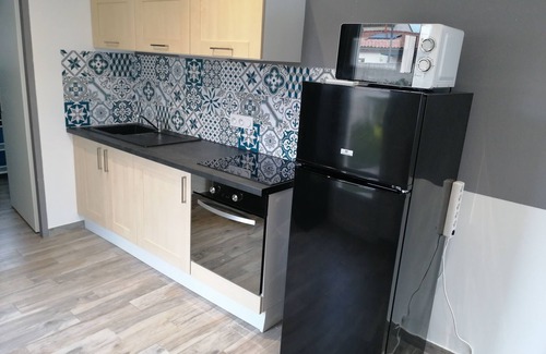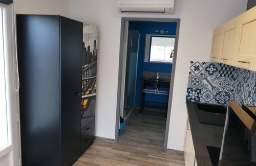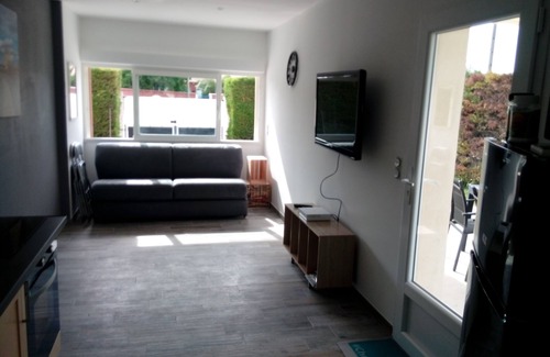 independent studio, of even foot, 22 m ², room to live + room of shower with toilet, terrace and well exposed garden. Comfortable apartment, equipped kitchen (oven, hob, microwave), fridge with freezer, sofa bed (very comfortable, 160 cm wide, memory foam mattress 17 cm thick), very bright, modern and clean, terrace with table + gas barbecue, ground and 2 sunbeds, air conditioning, jacuzzi available.