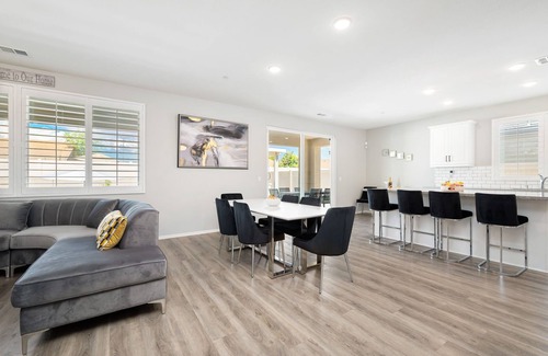 Welcome to our stylish and spacious 4BR 2.5 Bath desert oasis nestled in a tranquil and family-friendly area in Indio, CA. Escape the big-city crowds and enjoy the gorgeous pool backyard and the entertaining game room while being close to numerous restaurants, shops, attractions, activities.