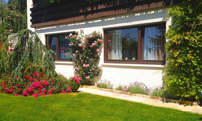 The private apartment is located in a quiet residential area on the edge of the town of Baden-Baden, in a sunny hillside in a quiet street. The nearby forest edge of the scenic route, which leads into the panorama, from where you have a wonderful panoramic view over the Rhine valley, the city and the Black Forest begins.