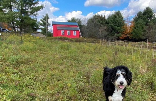 The entirety of the property is available for you to explore and discover. Our many apple trees, our vineyards, the sweet babbling brook outlined by gorgeous blue Forget me nots, the rock outcroppings and many different varieties of plants and animals.