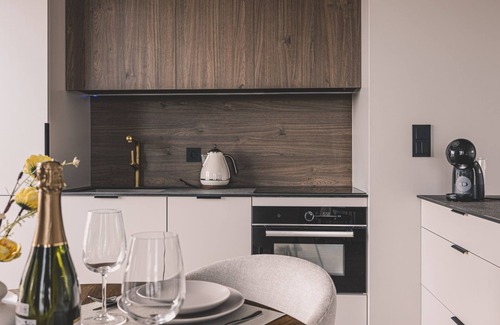 GeneralElectric kettle, Number of bedrooms - 1, Dishwasher, Spices, Designer toiletries, Stovetop, Kitchen, No rollaway/extra beds, Iron/ironing board, Television, In-room safe, Bed count minimum 2, Bed sheets provided, Hair dryer, Free WiFi, Digital TV service, Coffee/tea maker, Shower only, Pets not allowed, Laptop-friendly workspace, Ping - 12.1, Towels provided, Square feet - 431, Number of bathrooms - 1, Cookware, dishware, and utensils, Washing machine, Square meters - 40, Private bathroom, Heating, No cribs (infant beds), Freezer, Oven, Refrigerator, Bed count maximum 2 |
