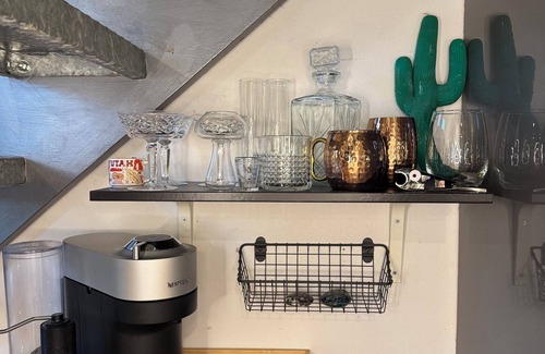 This unit is part of a historic industrial-style building on a quiet, charming street tucked into the heart of downtown Salt Lake City. The building sits on a small, landscaped lot with mature trees and greenery that provide a touch of privacy in the urban setting. The unit requires climbing a few stairs, which adds to its loft-like character but may not be suitable for guests with limited mobility.