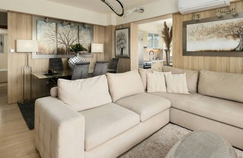 A brand new, ultra-luxurious and comfortable apartment (75sqm+18sqm balcony), two bedrooms, on the third floor (penthouse), of a modern building with parking and elevator, just 5 steps from the sea. If you like swimming, then you have found the ideal place for your holidays.