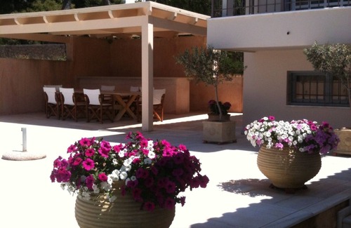 JUST A SHORT WALK FROM THE NEAREST BEACH, THE HOUSE OFFERS BEAUTIFUL VIEWS OVER THE ISLAND OF SPETSES FROM ITS SPACIOUS DECK AND ITS LARGE INFINITY POOL. THE OUTSIDE AREA ALSO HAS A LARGE DINING AREA, WITH BAR, FRIDGE AND BBQ. SET OUT OVER 3 LEVELS AND DECORATED TO A HIGH STANDARD, THE HOUSE OFFERS A COMFORTABLE LIVING ROOM, A LARGE, FULLY EQUIPPED OPEN PLAN KITCHEN WITH SEPARATE DINING AREA AND A LOVELY BALCONY WITH SEA VIEWS. THREE BEDROOMS, INCLUDING ONE MASTER ARE SITUATED ON THE TOP FLOOR. ON THE LOWER FLOOR THERE ARE TWO FURTHER BEDROOMS WITH THEIR BATHROOMS AND A SEPARATE SEATING AREA. THE UTILITY ROOM IS SET ON THE MEZANINE LEVEL. IN ALL, THE HOUSE OFFERS 5 BEDROOMS AND 4 BATHROOMS WITH A FURTHER BATHROOM SERVING THE DECK & POOL AREA.