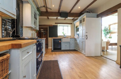 Inghams Barn has three bedrooms with TVs including one super-king-size bedroom, double bedroom with, and a double bedroom with en-suite shower, basin, and WC. There's a bathroom with a roll-top bath, walk-in shower, basin, and WC. There's a kitchen/diner equipped with a gas oven and hob, microwave, air fryer, fridge/freezer, and dishwasher. There's a sitting room with woodburning stove. There's a conservatory with corner sofa. There's a games room with pool table and table football. WiFi, fuel and power inc. in rent. Bed linen and towels inc. in rent. Outside there's private parking for three cars, an enclosed private garden with lawn, patio and furniture. Sorry, no smoking. Nearest shop and pub in 2.2 miles. Explore Burnley at Inghams Barn.