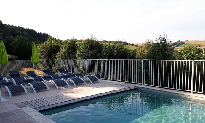 IMPORTANT: Covid 19 provisions: The official sanitary provisions in force for the rental months scheduled for July, August and September 2023 will be applied. Also note that the swimming pool is only open from July 8 to September 8, 2023. The Hameau Promontoire de Sajac, located in the South of Aveyron, at the end of the paved road, is a former polyculture farm living in autarky (operated until 1980) which has been gradually renovated by the daughter of the Farmer and her husband by trying to respect as much as possible the layout and the architecture of the different buildings: houses, stables, barns, bread ovens, chestnut dryer, oven .... From the promontory where Sajac is located, in the Grands Causses Regional Natural Park, you dominate the Tarn valley, a panorama of meadows and wooded hills awaits you. Visit the UNESCO World Heritage with Albi and the Causses and Cévennes. The 30 m² enclosed wooden terrace, located to the north, overlooks the Tarn Valley: a calm and relaxing place, especially on hot days! Brousse le Château, 7km away, is classified as one of the "most beautiful villages in France". Enjoy in the evening, during the night, the freshness that rises from the river Tarn flowing below (distance 800 m, height difference 300 m) which has been fitted out for fishing activities; the arrival of the longest canoe route on the Tarn is located almost directly above the hamlet. Maintained paths around the Hamlet allow very pleasant walks in nature and the woods of pubescent oaks, chestnut trees and conifers and to connect the surrounding hamlets. Independent cottage, on 2 levels, in a hamlet, near 3 other cottages (6, 5 and 2 beds) and the owner's second home (present during the rental period) - 5 bedrooms (2 double beds, 8 90 with 1 washbasin per bedroom), 3 shower rooms, kitchen/dining room (washing machine, dishwasher, television), 1 living room (BZ 140 convertible sofa bed), internet access/wifi, terrace panoramic (30m²) closed and private balcony (11m²), garden furniture, barbecue - Sheets and towels not provided. Auxiliary electric heating, electricity extra depending on use: see accommodation sheet COMMON: heated swimming pool (5x10 m, depth 1.20 m) at the owner's, water treatment: water sterilization by passage through a UV tube and treatment with residual oxygen, usable from July 8 to September 8, 2023, shared by 4 gites and the owner , access hours: 6 days a week from 10 [hidden] to 12:30 [hidden] and from 3:30 [hidden] to 7 [hidden]; games room (80m²); panoramic terrace (70 m²); internet access/wifi (at the level of the 30 m² gite terrace, the dining room and the living room); table tennis; enclosed playground (600 m²); petanque ; golf swing initiation course. Access to the cottage is via an inclined plane at the level of the 11 m² terrace allowing people with walking difficulties to access the ground floor and the panoramic terrace of the cottage and to the various paved paths in the hamlet. Optional services to be paid on site and to be reserved before your arrival: - End of stay cleaning: 159.57€ per stay Unless stated, services such as cleaning, bed linen, towels etc. are not included in the price of this rental. If pets are allowed (information in the advertisement), charges may be applicable. Only equipment mentioned in this advertisement are present. Equipment not mentioned are not considered to be present.