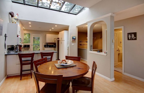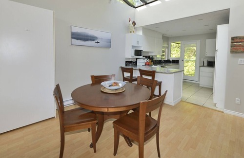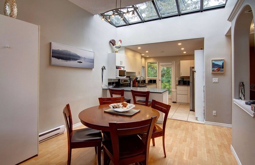 WEEKLY AND MONTHLY RATES AVAILABLE IN FALL/WINTER Spectacular views & gorgeous grounds our townhouse features AC and is situated on 3.5 acres of meticulously kept grounds. Developed as a vacation complex you can enjoy a swimming pool, hot tub, playground, tennis courts and dock - park your boat, set your crab trap or fish - its up to you. Our two bedroom, two bathroom townhouse with murphy bed sleeps 6. Primary Bedroom hosts a newer King bed with gel mattress, second bedroom newer extra length twin beds and living area hosts a queen murphy bed. Renovated bathrooms feature infloor heat. This is a paradise for fishing, hiking, snorkeling and kayaking! Kitchen features new stainless steel appliances, quartz counters and is packed with all the cooking utensils you need plus extras. We personally rented for 2 years and then bought our own unit as we adored it so very much. It comes Fully furnished and ready for your memory filled vacation. 10 minutes to the airport, 15 minutes to the ferry, 25 minutes to Nanaimo Costco. Note swimming pool and boat dock is seasonal (May-Sept) hot tub open year round. Please note weekly and monthly winter rates are available contact for further details.