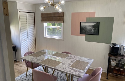 Relax and unwind in our spacious home that was carefully designed to give you the perfect and stylish escape from the stresses of life. This is the perfect getaway for a small group or family and includes cozy rooms, a fenced in deck and a fire pit.
