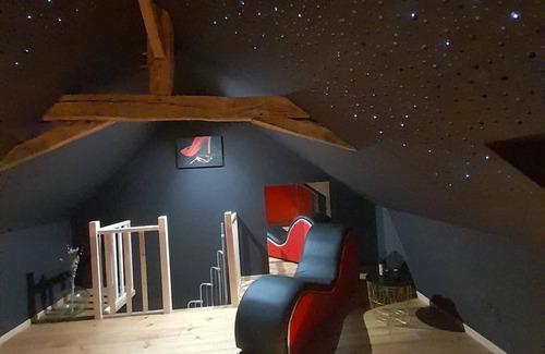 Instant à Deux is located in Precigne. Instant à Deux provides accommodation, featuring Security/Safety, Wellness Facilities, Hot Tub, among other amenities. This House features Security/Safety, Wellness Facilities, Hot Tub, to make your stay a comfortable one.