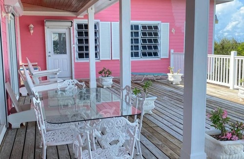 Located on a 10-acre estate near Rolleville, Exuma, this hilltop suite, with panoramic sea views, is the ideal getaway for a writer in search of serenity in a setting close to nature, a family with small children or a mature traveller.. Dine or just relax on a wraparound deck, with grill, hot tub, lounge chairs. Or stroll down the wooden stairway and nature trail to your secluded private powdery beach. A caretaker is on premises and can assist with any need that may arise. Living accommodations include a suite with 2 queen beds, love seat/convertible bed, capable of sleeping four persons, and a wall mounted television. The adjourning bathroom features both a shower and tub. Kitchenette is equipped with electric stove, refrigerator, microwave and cooking dishes/cutlery/utensils. There is also a family size washer and dryer. The only sound to be heard is the Exuma wind blowing through the casuarina trees and the rhythm of sea waves as they gently embrace the white sandy beach.