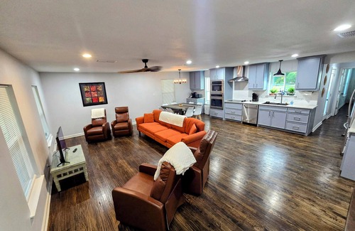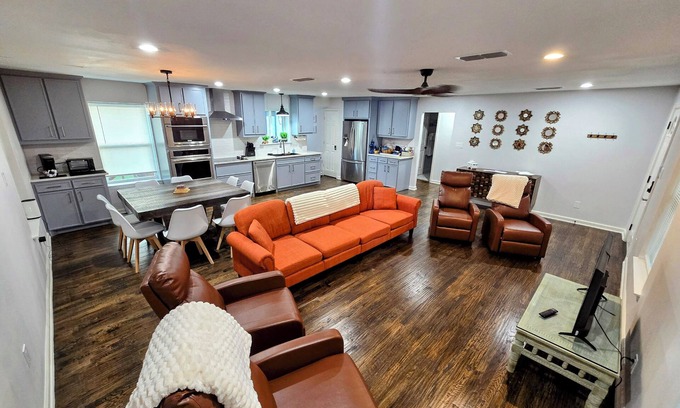 Remodeled 3-bedroom home in the heart of downtown Nevada, TX—right next door to the amazingly delicious Watkins Café! Wake up and walk just a few feet for a full breakfast or lunch. Enjoy a large living space open to the kitchen and dining areas. Restful bedrooms with super comfy beds, fresh linens, and smart TVs. Love to cook? Whether you're whipping up breakfast or hosting a dinner, you'll feel right at home in this fully stocked kitchen. Grill on the patio with outdoor dining and enjoy the sunsets. Perfect for families, groups, or business stays. We DO allow parties and special events as long as you agree to be respectful of VRBO policies.