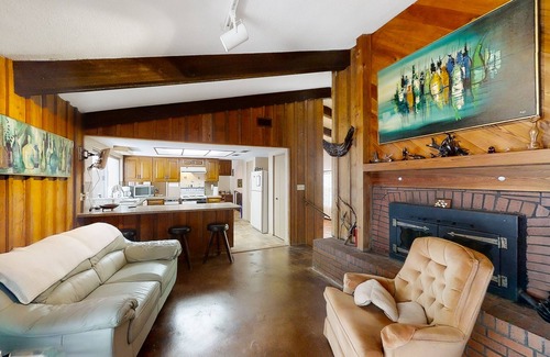 Upon entry, you'll be met with a bright interior and a cozy atmosphere throughout the well-appointed living area. Relax and make yourself at home by resting on the plush furniture, streaming your favorite movies on the large TV, or serving brunch on the covered patio. Whip up delicious meals in the quaint kitchen, equipped with ample cupboard room and a sunken-floor dining room table. Comfortable beds in spacious bedrooms ensure that everyone will receive a wonderful night's rest from the day's adventures.