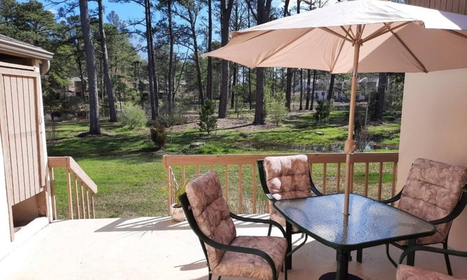 The townhouse is beautifully appointed and features a fully stocked kitchen opening into a living room with a wood burning fireplace and a queen-sized sleeper sectional in the living area. A large rear deck with a propane grill, an outside shower, and pond views makes this townhouse perfect for relaxation or entertainment.