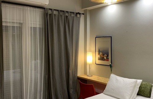 A new private, secured, and luxurious en-suite fully furnished with private bath and a veranda, just few steps away from nice cafes, restaurants, bakery, dryer, pharmacies, supermarkets and Aretaieio private hospital. Has a kitchenette with a sink, mini bar-fridge, toaster, water kettle, coffeemaker, silverware and plates for light food preparation. A microwave is also available. An iron and a hairdryer can also be provided free.