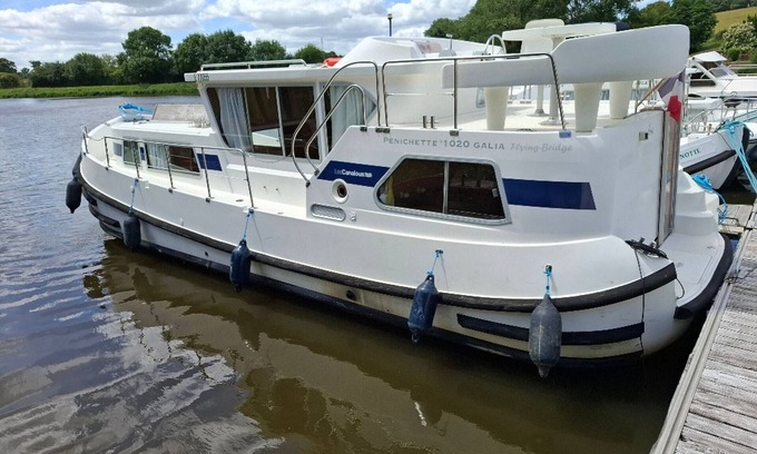 Embark on board Iris, our canal boat adapted to accommodate up to 5 people. You'll remain docked for the duration of your stay in a private space. The boat's layout is perfectly optimized with two double cabins, each with its own bathroom. One cabin has a double bed, and the other has a double bed that can be converted into two single beds, plus a bunk bed. You'll also find a comfortable area with a kitchenette and a bench seat offering a lovely view of the charming Chenillé-Changé marina.