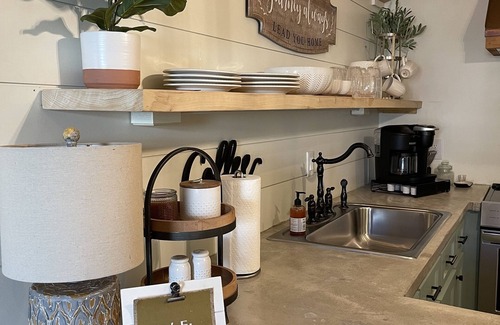 We have went with a modern like farm house appeal with ship lap, tile showers and concrete countertops. We have it very well decorated as you can see in the pictures. We have taken very much pride in our place so guest can enjoy and relax while they are with us.