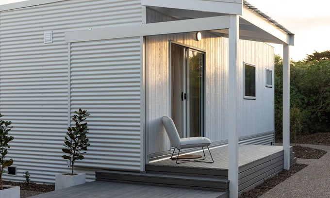 “Island Beach Retreat” is a brand new one-bedroom home that is perfect for a couple or small family, located just 900m from the Hot Springs (opening 2026), 280m from Surf Beach, and just a short drive from the supermarkets, restaurants & cafés of Cowes. Some of the many features of these lovely homes are detailed below: