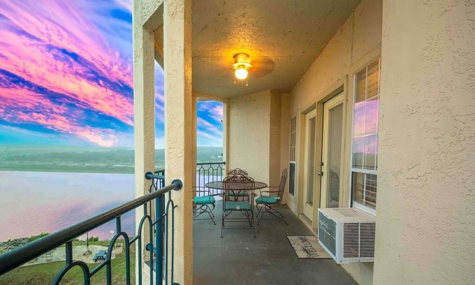 Feel welcomed, safe, and cared for in this well-stocked luxury condo with a private balcony and stunning lake views—even with low water levels.