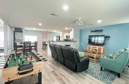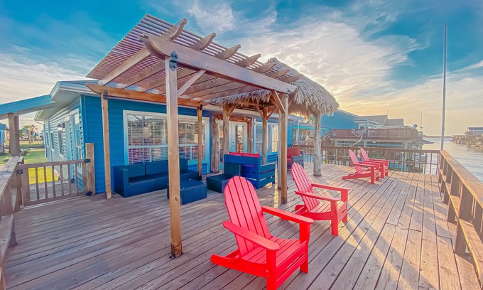 Get ready to escape from the Hustle and Bustle of life to unwind and enjoy simple days of fun in the sun as a family beach vacation or a bay/gulf fishing trip. This canal waterfront is home to the perfect blend of both, BEACH and BAY, with immediate access to bayside fishing & crabbing here in Treasure Island Community! Island Tyme is just a 2-3 minutes stroll away from the Treasure Island pedestrian beach access point or a leisurely drive to Surfside-Galveston activities; Schlitterbahn, Moody Gardens, Rainforest Cafe and Pleasure Pier,.