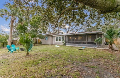 Located on the intracoastal, overlooking the Florida marsh you won't find a more tranquil spot. Sway in the hammock chair or build a fire at night and enjoy the coastal breezes coming off the water. The screened in porch offers outdoor dining and gathering space. Indoors, the calming blue theme offers plenty of room for your group to kick back and relax.