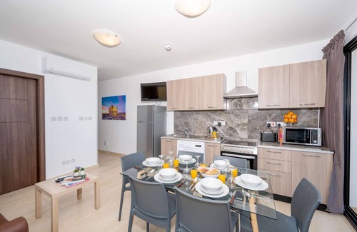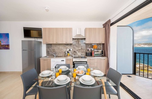 This lovely seafront apartment with large corner terrace is located right on the promenade in St Paul's Bay overlooking the islands of St. Paul's. One can enjoy the most beautiful panoramic spectacular sea views and the most beautiful sunsets from the front terrace. This is a lovely brand new apartment that is modern finished and fully equipped for your holiday in Malta.