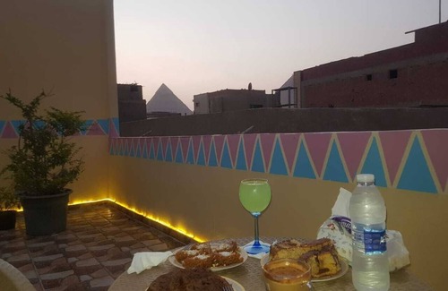 the house spot is pretty close to the pyramids sit, so you can have that close up view of Giza Pyramids from a quit privet roof related to your room, imagine that view while you having your favorite drink with you company, smoking SHISHA at Oriental music ;)