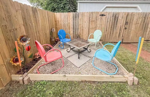 Outdoor BBQ grill and a firepit for summer cookouts or chill evenings.