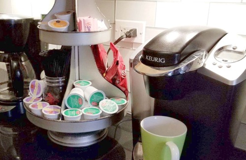 KITCHEN INCLUDES dishwasher, microwave, refrigerator/ freezer/ice maker, blender, Keurig and a water cooler! And a toaster; the most overlooked, undermentioned, never-asked-for appliance EVER - lol!