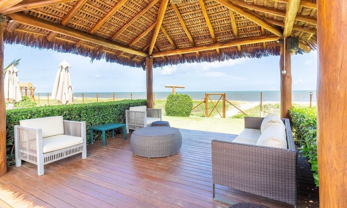 The village balconies are an invitation to relax and enjoy the sound of the sea! Benefits that only a house on the sand can provide. In addition, the condominium has a sea view pool, children's playground and private access to the beach!