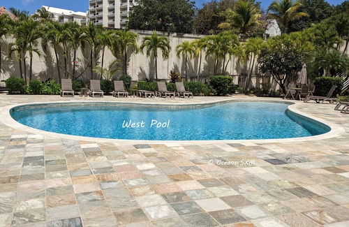 *** Backup generator installed Aug 2024*** Oceans SXM is a rare 3-bedroom 2 bath condo with stunning views overlooking the ocean. The South building directly overlooks the pool and ocean. As a coveted end unit, windows on 3 of the 4 exterior walls provides plentiful natural light and fresh air. Enjoy a lovely ocean view and gentle Caribbean breezes as boats cruise by - from your own balcony or the pool deck.