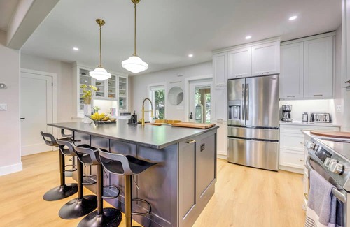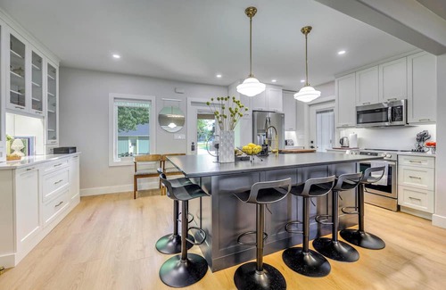 Welcome to the beautiful and blue St Clair River at Sombra. Ivy Cottage River Retreat offers a serene getaway and front-row seat to impressive laker ships and pleasure craft gliding by. Whether you're fishing from the dock, diving into a good book, or relaxing, you'll find the perfect spot. Enjoy river views across to the USA from the sunroom (with its roll-up door), adjacent patio, covered deck, or dining room’s picture window. A stylish & spacious place ideal for groups or quiet solo escapes!