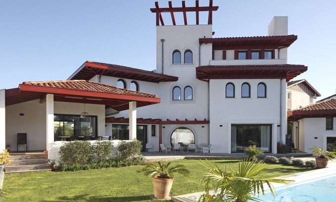 Villa IZARRA is located 10 minutes walk from the beach and the town center of Saint Jean de Luz. With an area of approximately 300 square meters, equipped for 14 persons. It offers a beautiful living room, two terraces, a summer kitchen, a heated swimming pool and a bowling alley. Its architecture is made of large openings on the exterior allowing maximum benefit from the sun. Decorated with taste and modernity, it will be perfect for holidays with family or friends.