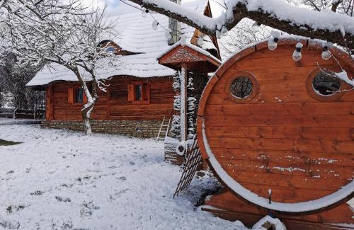 Providing a garden, Jabłoniowa Chatka provides accommodations in Kalwaria Pacławska. Both Wifi and private parking are available at the chalet free of charge. Outdoor seating is also available at Jabłoniowa Chatka. This air-conditioned 2-bedroom chalet comes with a dining area, a flat-screen TV, and a fully equipped kitchenette with an oven. The accommodation has a fireplace.