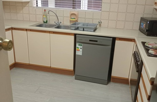 The kitchen is fully equipped with 4 plate HOB, oven ,refrigerator, microwave, kettle, toaster, cooking and eating utensils, coffee plunger