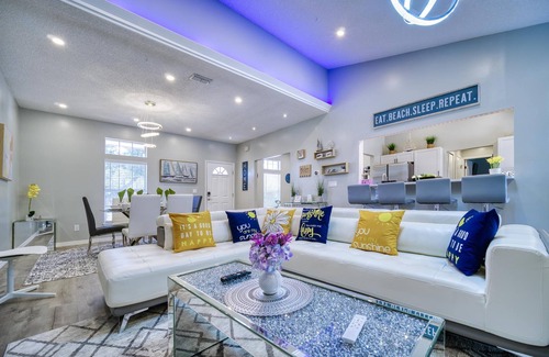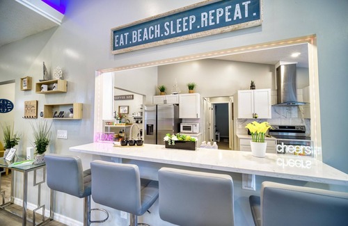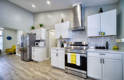 Have fun with the whole family at this stylish place. This newly renovated home has a private pool with a huge backyard that family and friends could have a wonderful vacation and memories. There's a TV in each bedroom with high tech nightstand, and fully equipped kitchen follows and open floor plan. Even better with a coffee bar and 2 reading chairs.