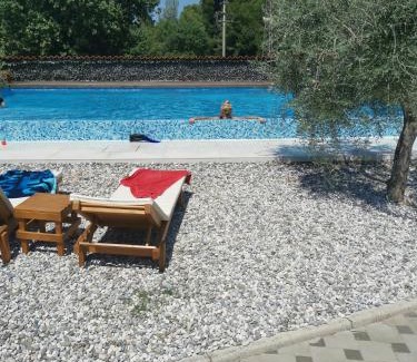 Featuring a seasonal outdoor swimming pool, Jacuzi Cottage in the olive grove provides accommodations in Pula. This property offers access to a terrace and free private parking. The campground features an outdoor fireplace and a 24-hour front desk. The air-conditioned campground is composed of 1 separate bedroom, a living room, a fully equipped kitchen with a fridge and stovetop, and 2 bathrooms. A flat-screen TV is available. For added privacy, the accommodation has a private entrance and soundproofing. For those times when you'd rather not eat out, you can cook on the barbecue. A water park is available on-site, and both cycling and walking tours can be enjoyed close to the campground. Banjole Beach is a 12-minute walk from Jacuzi Cottage in the olive grove, while Pula Arena is 4.3 miles from the property. Pula Airport is 6.8 miles away.